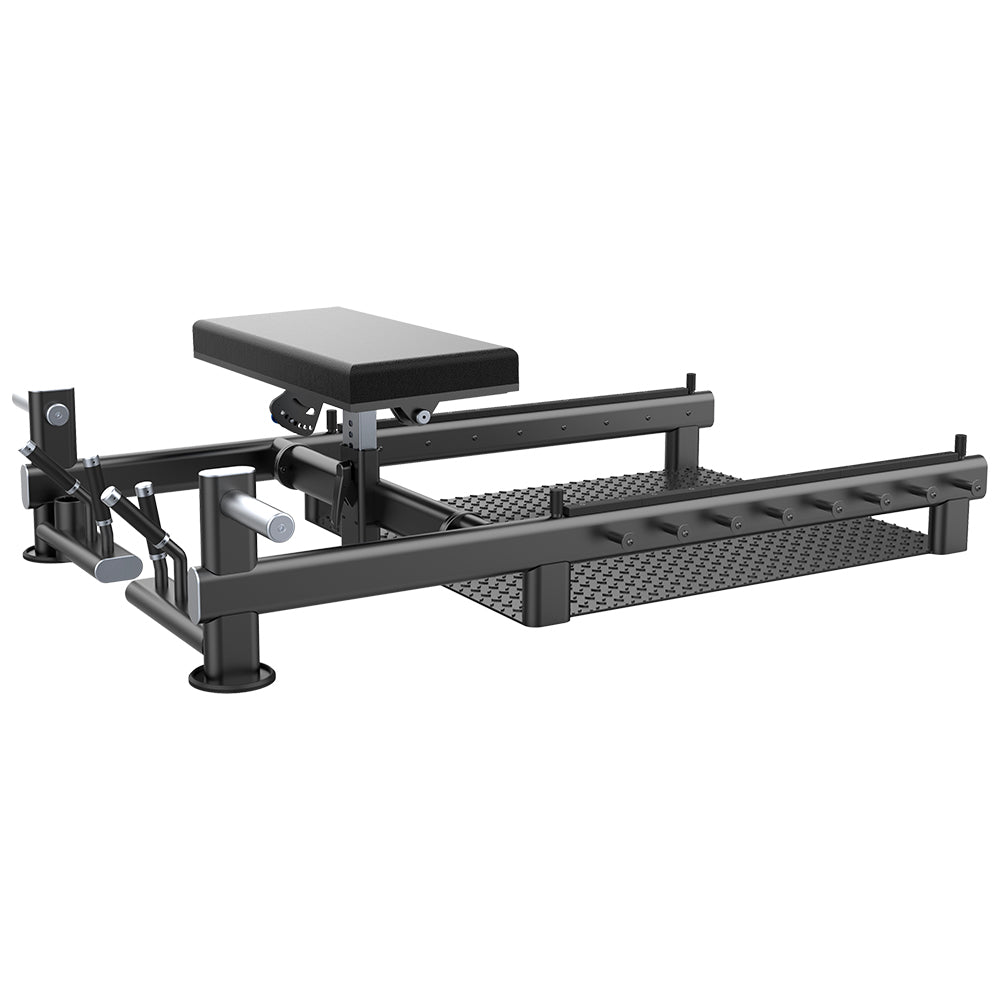 Está diseñada para ofrecer una plataforma especializada para ejercicios de glúteo, pierna y zona media (core), todo en un diseño compacto y funcional. Esta banca elimina la necesidad de utilizar bancas planas tradicionales, proporcionando una estructura pensada específicamente para los entrenamientos de glúteo, optimizando el espacio y mejorando la eficiencia del ejercicio.