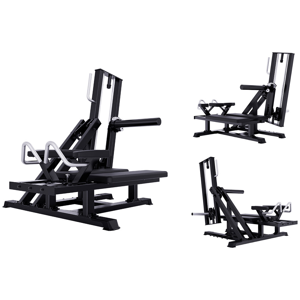 Diseñada para maximizar el trabajo de glúteos, cuádriceps e isquiotibiales, esta máquina ofrece un entrenamiento completo y altamente eficiente. Su sistema de ajuste con tres posiciones de ángulo permite personalizar el ejercicio según el objetivo y nivel del usuario, favoreciendo una activación muscular específica. Incorpora apoyos acolchados para codos y puños regulables de forma horizontal, que aportan estabilidad, comodidad y seguridad durante el movimiento. Además, su diseño ergonómico garantiza una correcta alineación de la pierna de empuje, optimizando la biomecánica y el rendimiento del ejercicio.