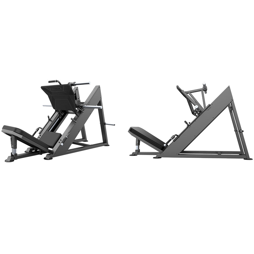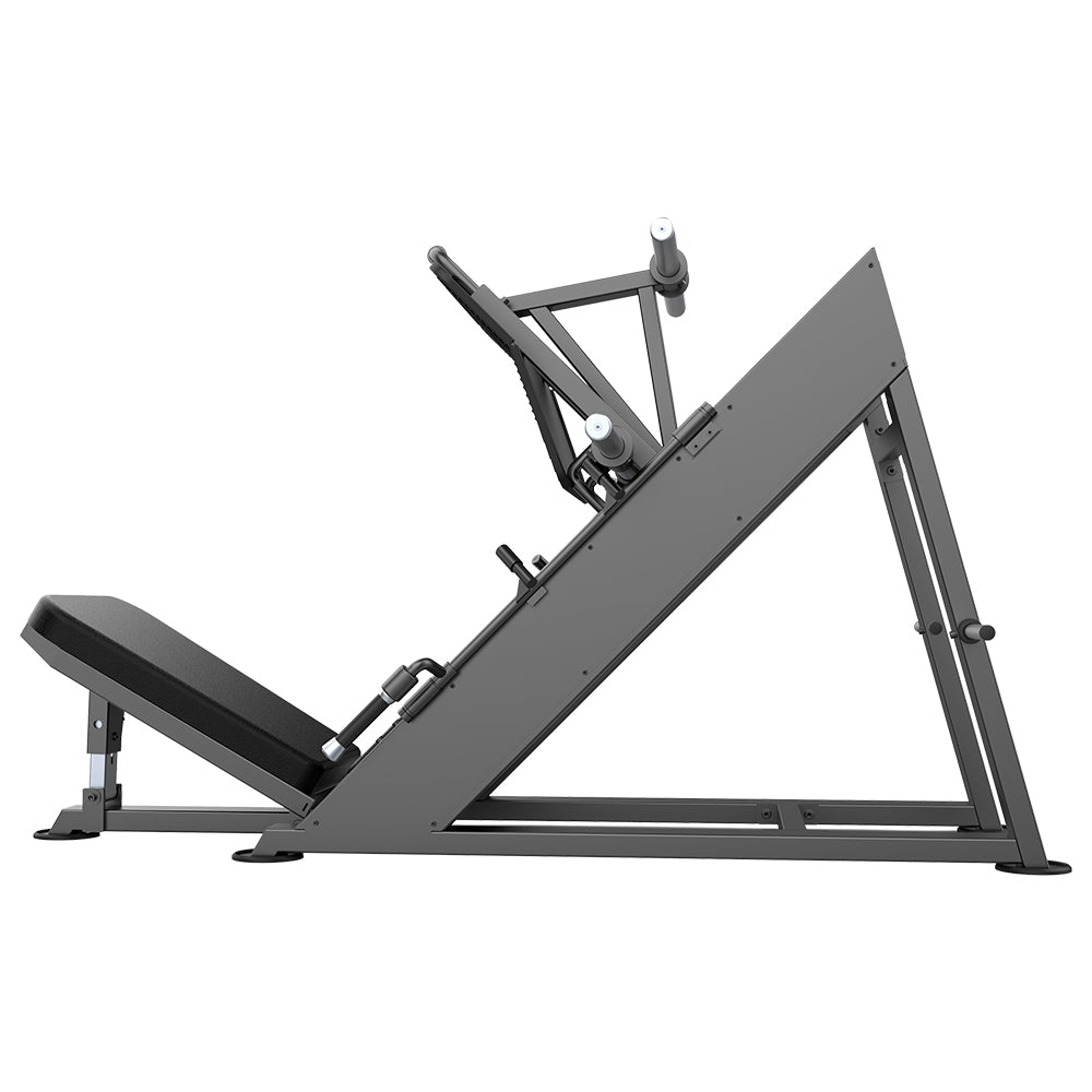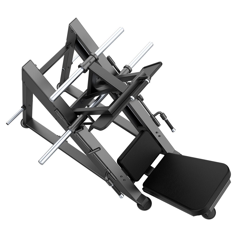 Su estructura de acero de alta resistencia, combinada con pintura electrostática, garantiza una larga vida útil incluso bajo condiciones de uso intensivo. La biomecánica de precisión ofrece un desplazamiento suave y controlado, protegiendo las articulaciones y maximizando el aislamiento muscular. Incorpora una plataforma sobredimensionada y un respaldo ergonómico de alta densidad que brindan total versatilidad para el entrenamiento de cuádriceps y glúteos con máxima seguridad, incluso al trabajar con cargas elevadas. Además, cuenta con soportes integrados para discos, optimizando el espacio y eliminando la necesidad de racks adicionales.
